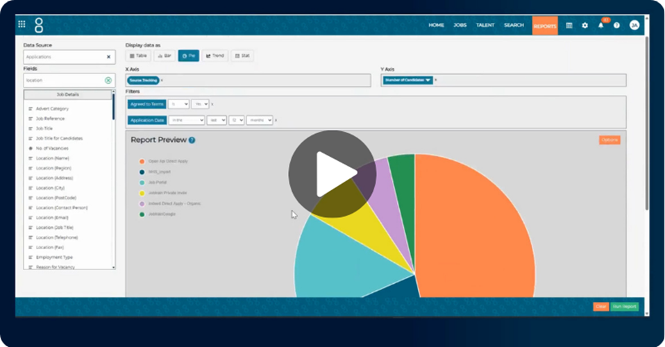 Our new Report Builder gives your teams a faster, smarter way to work with live recruitment data using a clean drag-and-drop interface and flexible visual outputs. Create custom tables and charts, apply powerful filters and save personal or shared reports.