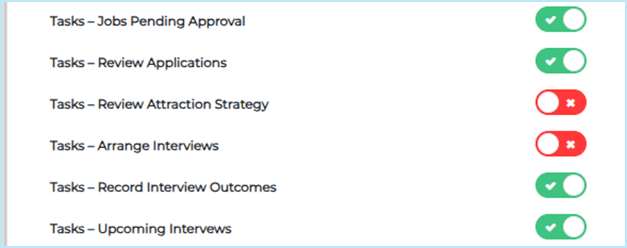This lets you match task visibility to the user’s responsibilities (e.g. shortlisting, referencing, onboarding).